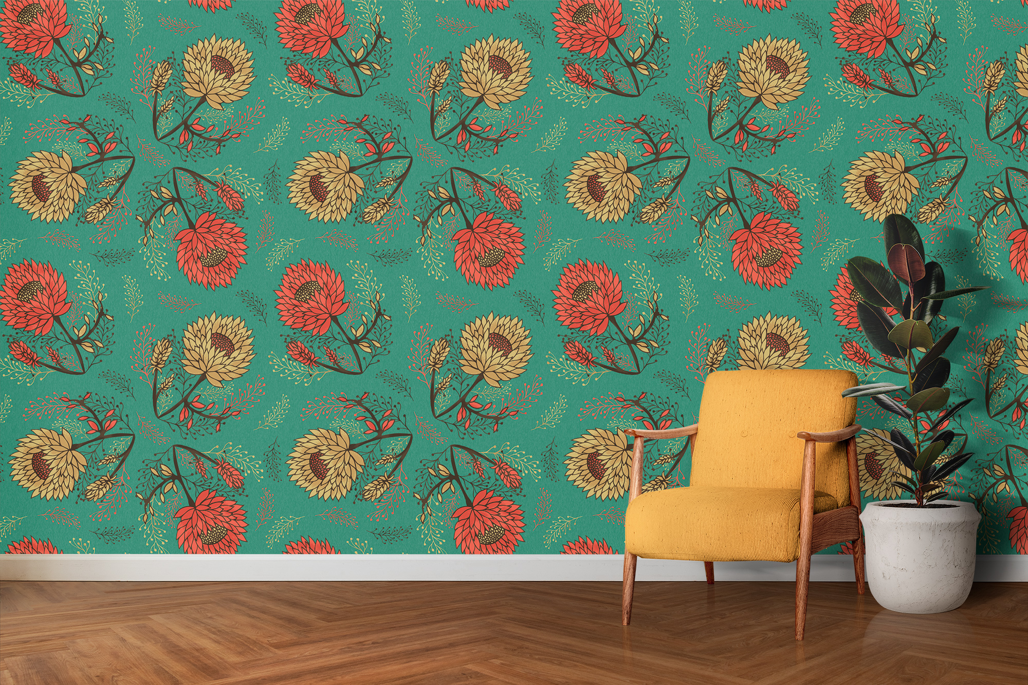Protea Bloom Teal Wallpaper